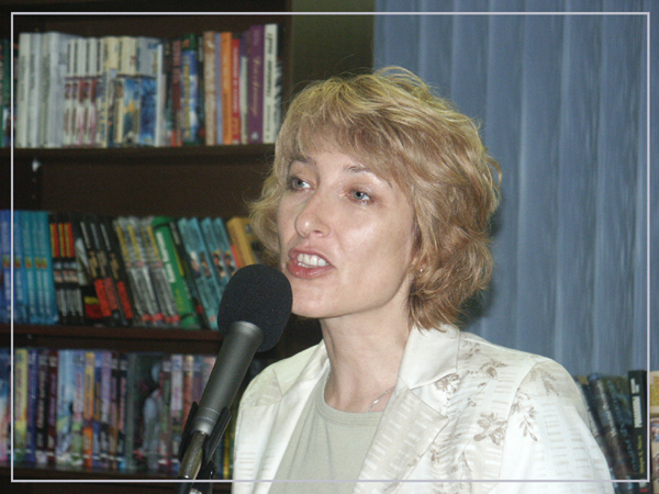 Best of all Marina introduced herself in “Book for Four”, as if responding to the questions of some imaginary questionnaire. Was born in Novosibirsk. Childhood fell on the late 60s. Have never had and don’t have any political predilections. By social orientation she is rather a lone sniper than an ordinary member of an active poetic group. She is a steady nordic character with a touch of southern unbalanced state. She’s loved and still loves to travel and change trades. Gave birth to her son and bought him up. Used to work wherever she had a chance, out of necessety – either for the roof over her head or for her bread. In the mid 80s she was accepted by a kind military commander to a detachment of workers to be sent to Afghanistan, but stopped by the city authorities for not having ever been a member of All-Union Leninist Young Communist League. She started composing poems at an early age, but began to write them down significantly later. She passionately love animals, and that is mutual… (……) At the end of 1998 she and her family moved to Germany, since 2000 she’s lived in Dusseldorf. She translates German and English poetry, writes poems and still works wherever she has a chance to, for example, for two years she worked at a casino, where, to the horror of her German golleagues, managed to write and translate dusing business hours… (…..) This is Marina’s first visit to Kishinev. “There is -7C in Siberia right now, and here everything is blooming. Quite European whether”. Marina got to Moldavia thanks to Vita Barshteyn, our former fellow citizen who’s lived in the US for 12 years now. Vita translated into Russian once sensational and put on screen documentary book by Erica Fischer Aimee & Jaguar. The book is based in a tragic story of the Jewish girl named Felice, who dies in 1944. Vita offered Marina Gershenovich to translate the heroine’s poems. She was familiar with Marina’s own poetry. The translated book was published by one of Kishinev publishing houses, Depozit en Gros. That’s how the project gained truly international scope. In her juvinilias Felice imitated Mascha Kaleko, well-known in the pre-war Germany, a poet of Jewish roots, who wrote in German. Thomas Mann spoke highly of her peculiar, ironic, unsentimental poetry. At the late 1930s, Kaleko emigrated to the United States, later moved to Israel, and passed away in 1975 in one of Zurich hospitals. Mascha Kaleko’s poems (also in Gershenovich’s translation) are placed as an appendix to Aimee & Jaguar. Quite different are brilliantly translated by Marina into Russian poems of Gertud Kolmar. Up to now this killed in Auschwitz Jewish poet, who wrote in German, was considered very hard to translate into other languages. Kipling’s poetical work is on our guest’s program as well as Mozart’s poems, about existence of which many readers don’t even have a slightest idea. (……) Marina conceived and implemented the project The Book of Four, where the Russian poets of the same generation are introduced, the poets, whom time and circumstances settled in different countries – Israel, Germany, USA, Ukraine (which is this days also a foreign country to us). So, now the wind of polgrimages brought this citizen of the world to us. LIterary people and poetry lovers came to her reading. Marina was telling about herself, answering questions, but most of all she was was reciting poems – her own as well as translated. Very good ones, by the highest – Hamburg – score.